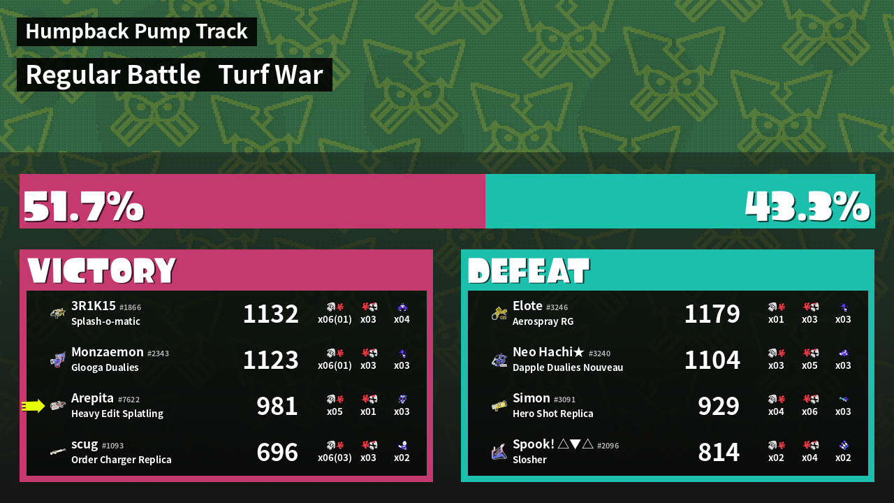 | Mode | Turf War - Regular Battle | ||