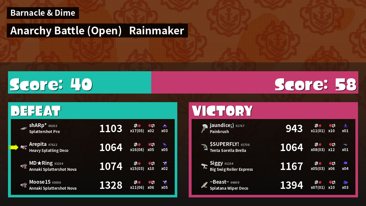 | Mode | Rainmaker - Anarchy Battle (Open) | ||