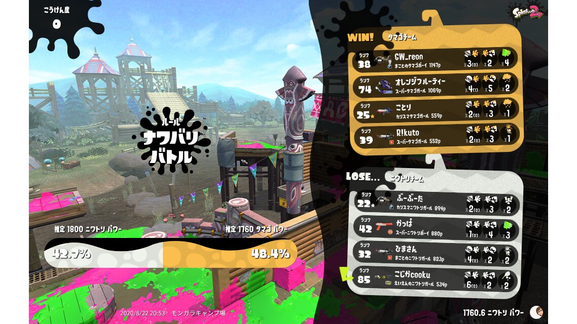 | Their team's splatfest power | 1,760 | ||||||||||||||||||||||||||||||||||||||||