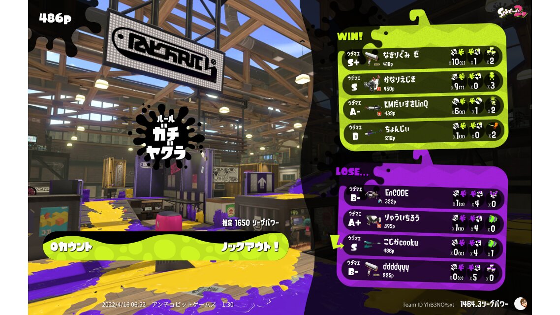 | Name | Weapon | Level | Rank | Inked | k+a/sp | k/d |