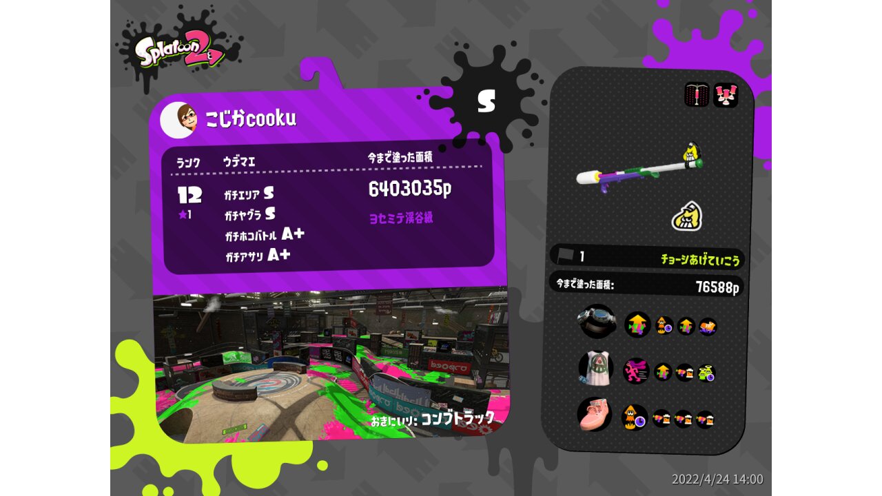 | User Agent | splatnet2statink / 1.7.0 | |||||||||||||||||||||||||||||||||||||