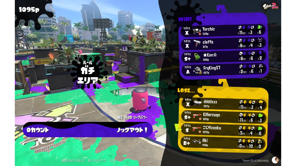 | Mode | Splat Zones - League Battle (Twin) | ||||||||||||||||||||||||||||||||||