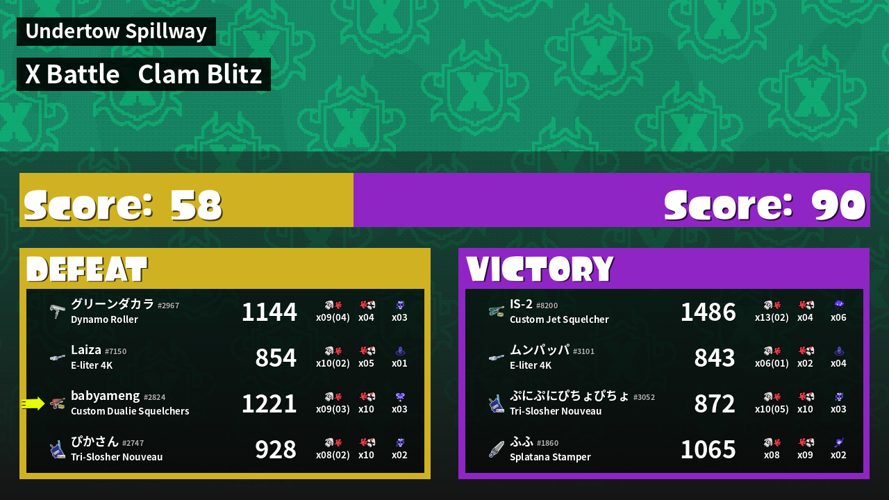| Mode | Clam Blitz - X Battle | ||