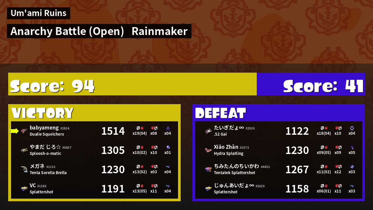| Mode | Rainmaker - Anarchy Battle (Open) | ||