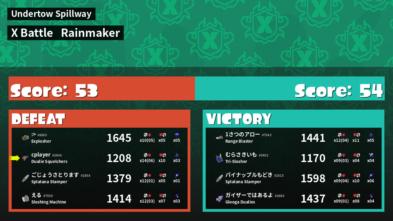 | Medals | #1 Overall Splatter #1 Splat Assister #1 Damage Taker | ||