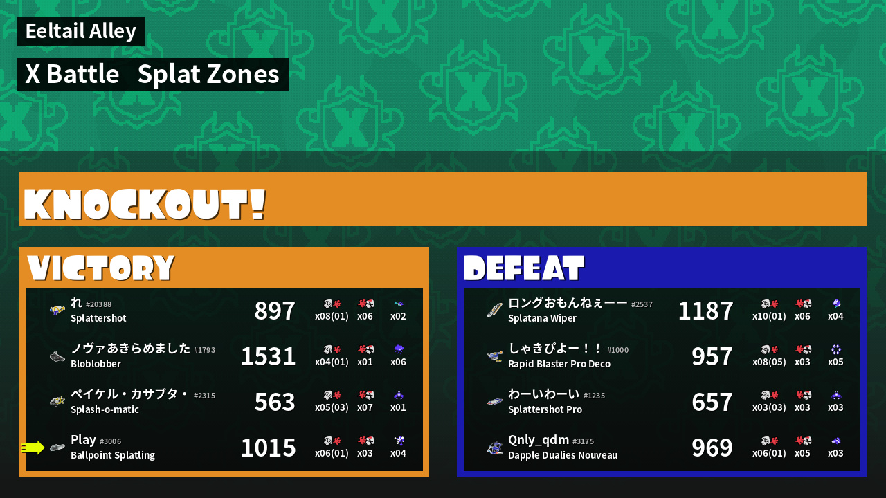 | Medals | #1 Inkjet User #2 Overall Splatter #2 Splat Zone Inker | ||