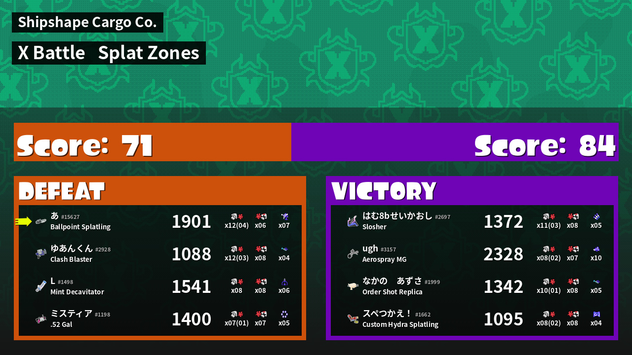 | Medals | #1 Overall Splatter #1 Splat Zone Guard #1 Turf Inker | ||