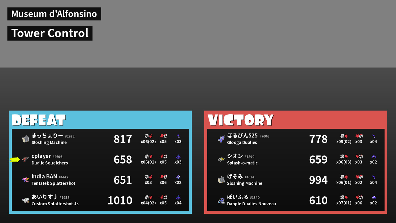 Results of cplayer's Battle