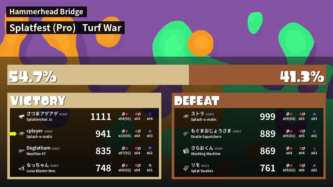 | Medals | #1 Overall Splatter #1 Splat Assister First Splat! | ||