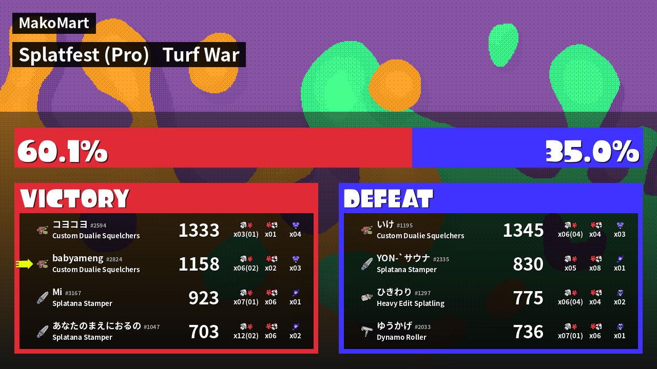 | Medals | #1 Home-Base Inker #1 Splat Assister #2 Turf Inker | ||