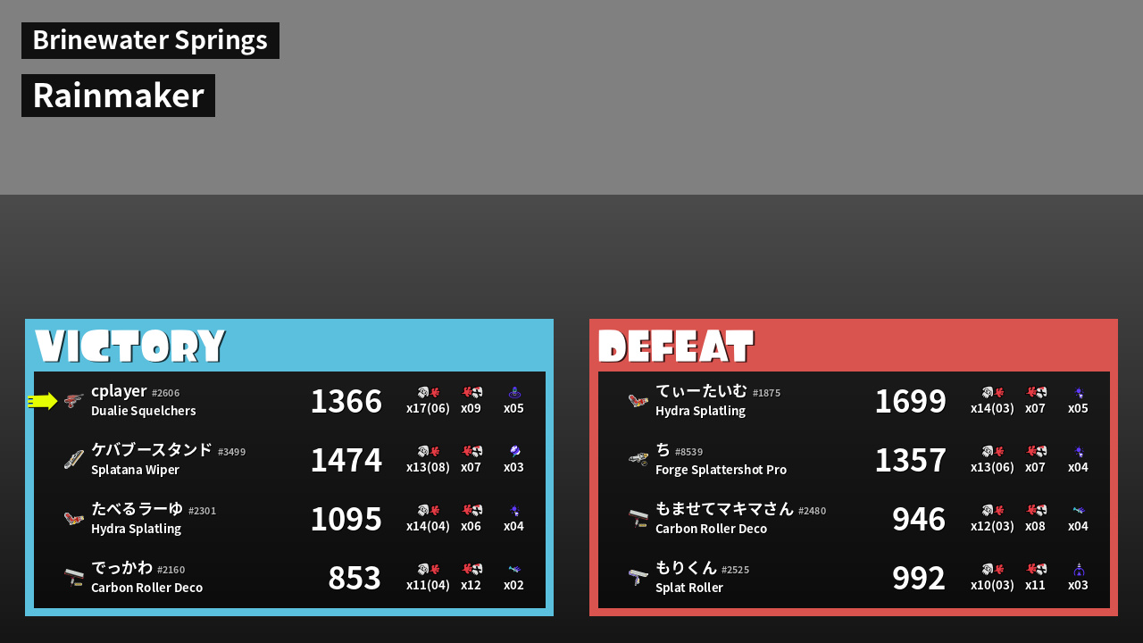 | Weapon | Dualie Squelchers ( Splat Bomb / Wave Breaker) | ||