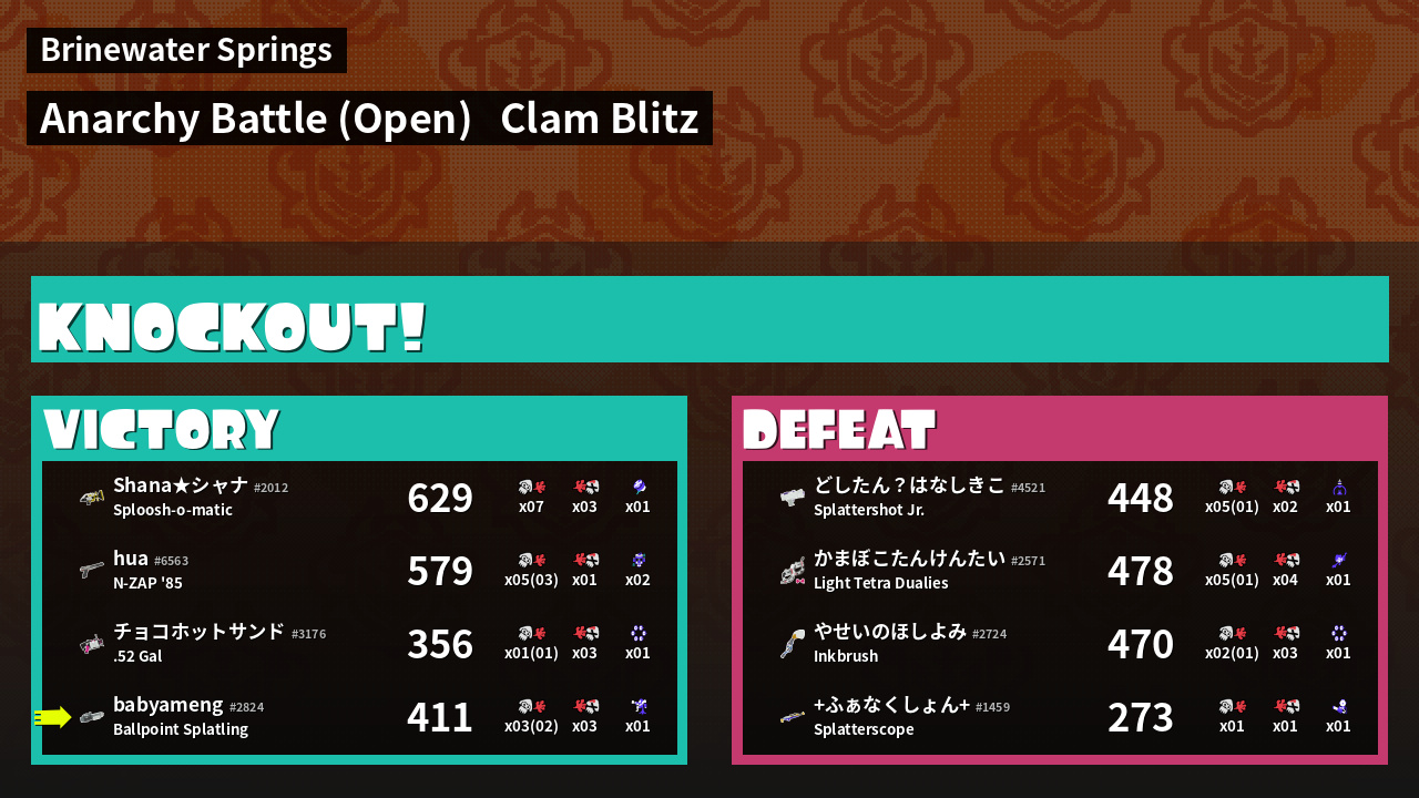 | Mode | Clam Blitz - Anarchy Battle (Open) | ||