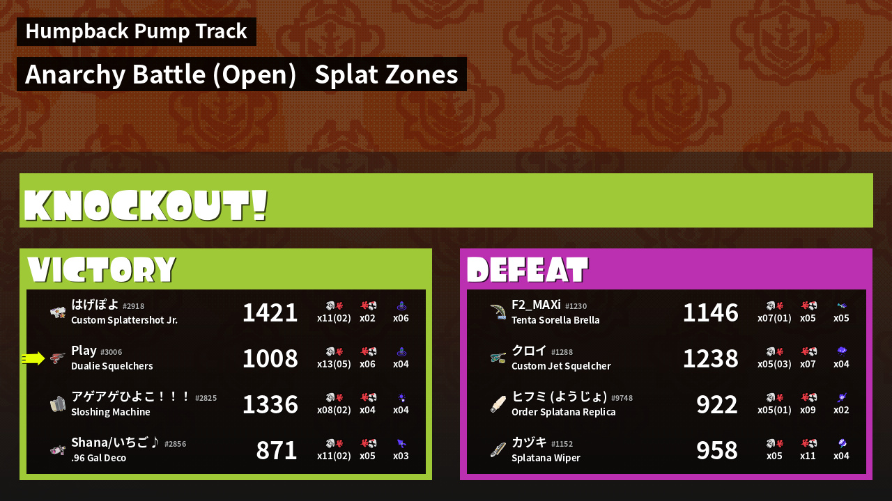 | Mode | Splat Zones - Anarchy Battle (Open) | ||