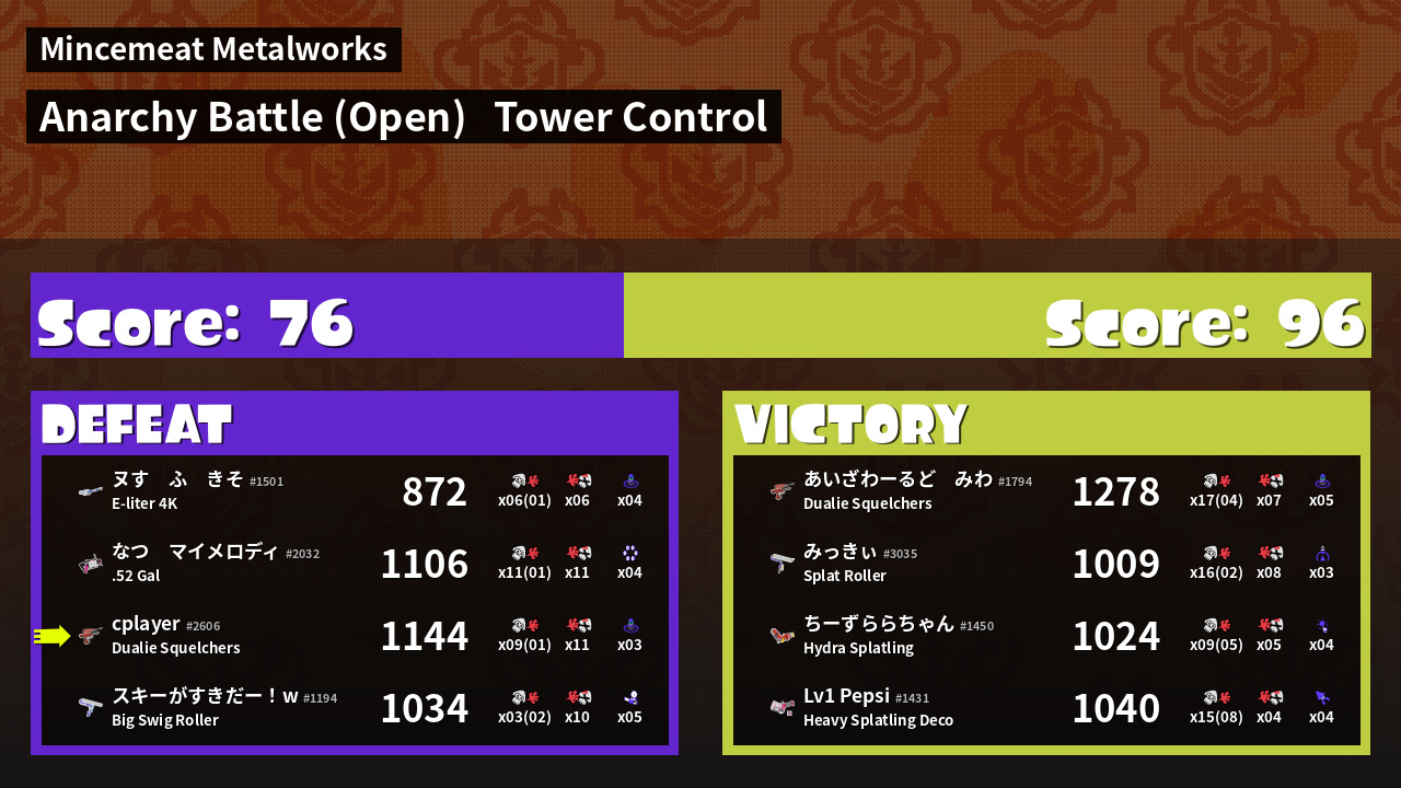 | Mode | Tower Control - Anarchy Battle (Open) | ||