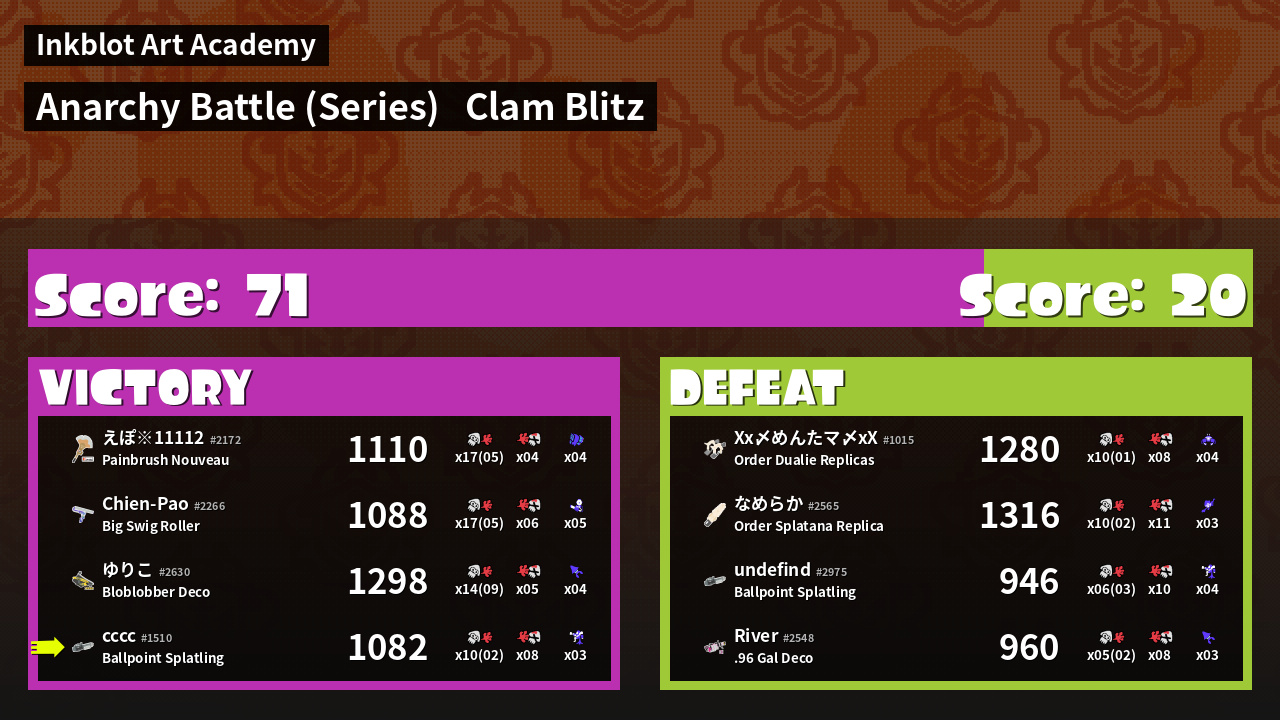 Name | Weapon | Inked | ![]() |