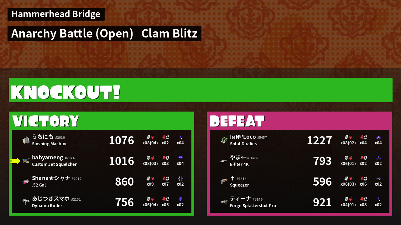| Mode | Clam Blitz - Anarchy Battle (Open) | ||