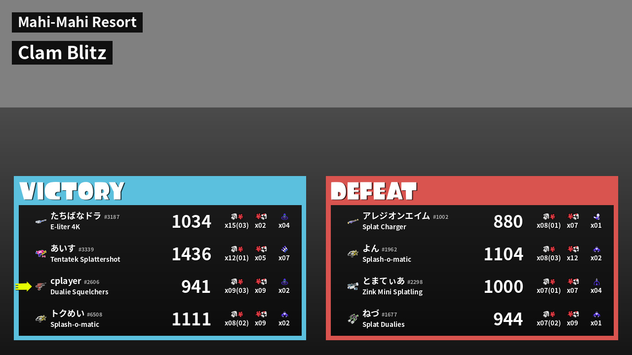 | Medals | #1 Splat Assister #1 Damage Taker #2 Score Booster | ||
