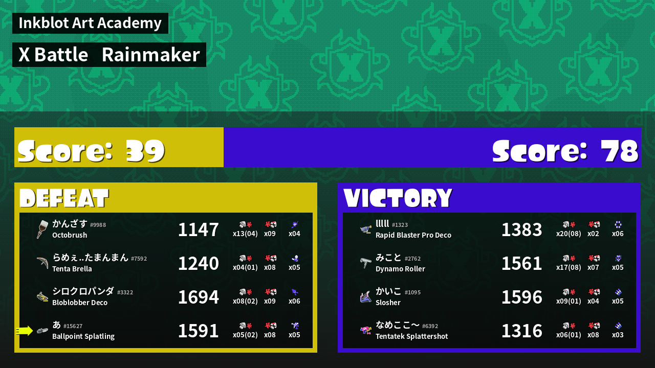 | Weapon | Ballpoint Splatling ( Fizzy Bomb / Inkjet) | ||