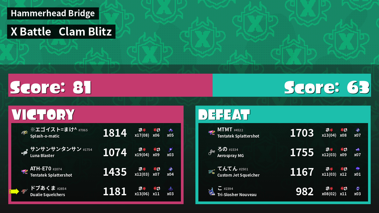 | Medals | #1 Clam Carrier #1 Wave Breaker User #2 Super Jump Spot | ||