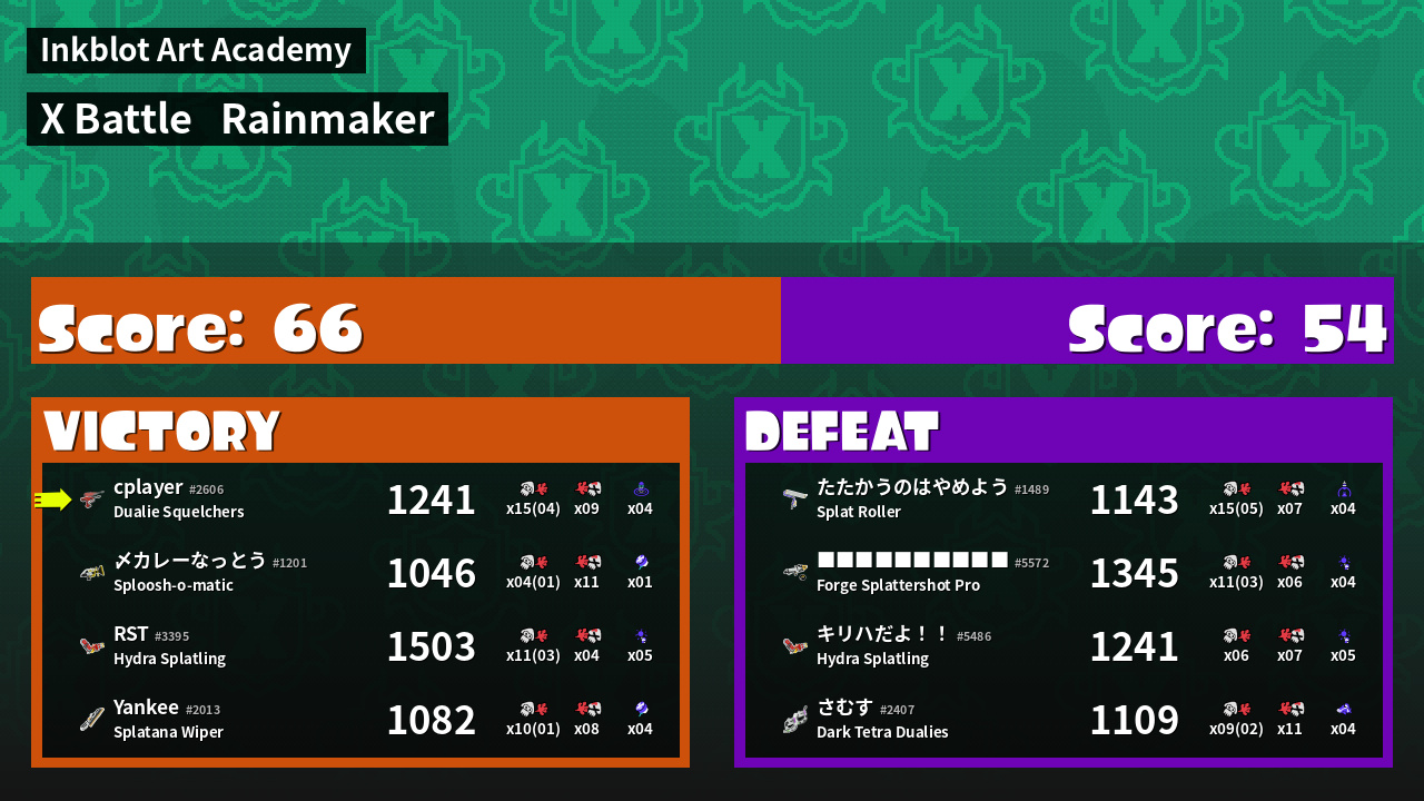 | Medals | #1 Overall Splatter #1 Enemy Splatter #1 Splat Assister | ||