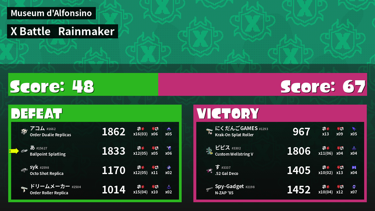| Medals | Record-Score Setter #1 Splat Assister #1 Inkjet User | ||