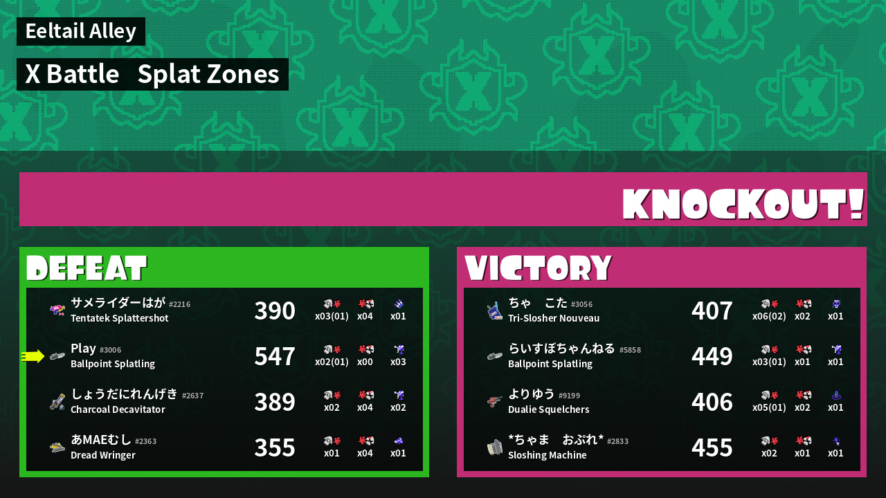 | Mode | Splat Zones - X Battle | ||