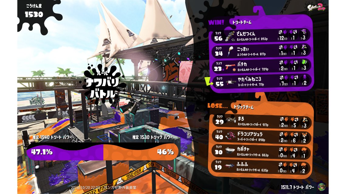 | Splatfest Title | トリート Defender 340 → トリート Defender 400 | ||||||||||||||||||||||||||||||||||||||||