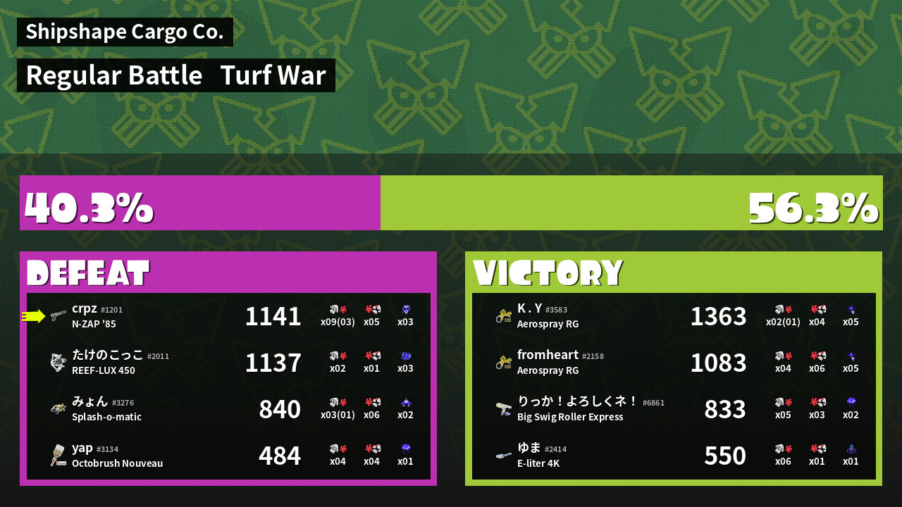 | Mode | Turf War - Regular Battle | ||