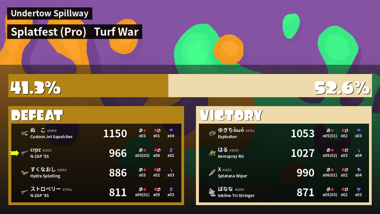 | Medals | #1 Splat Assister #2 Overall Splatter #2 Turf Inker | ||
