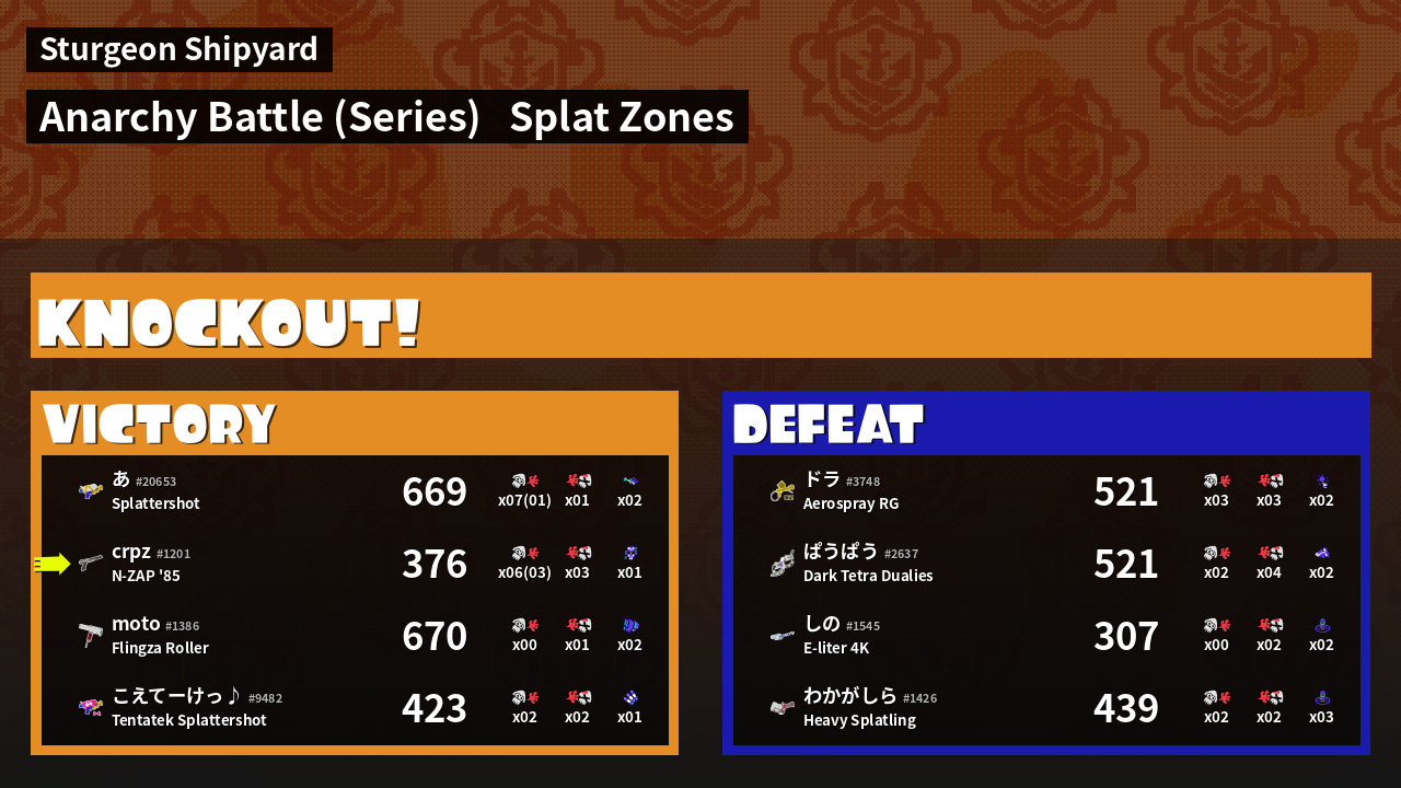 | Mode | Splat Zones - Anarchy Battle (Series) | ||