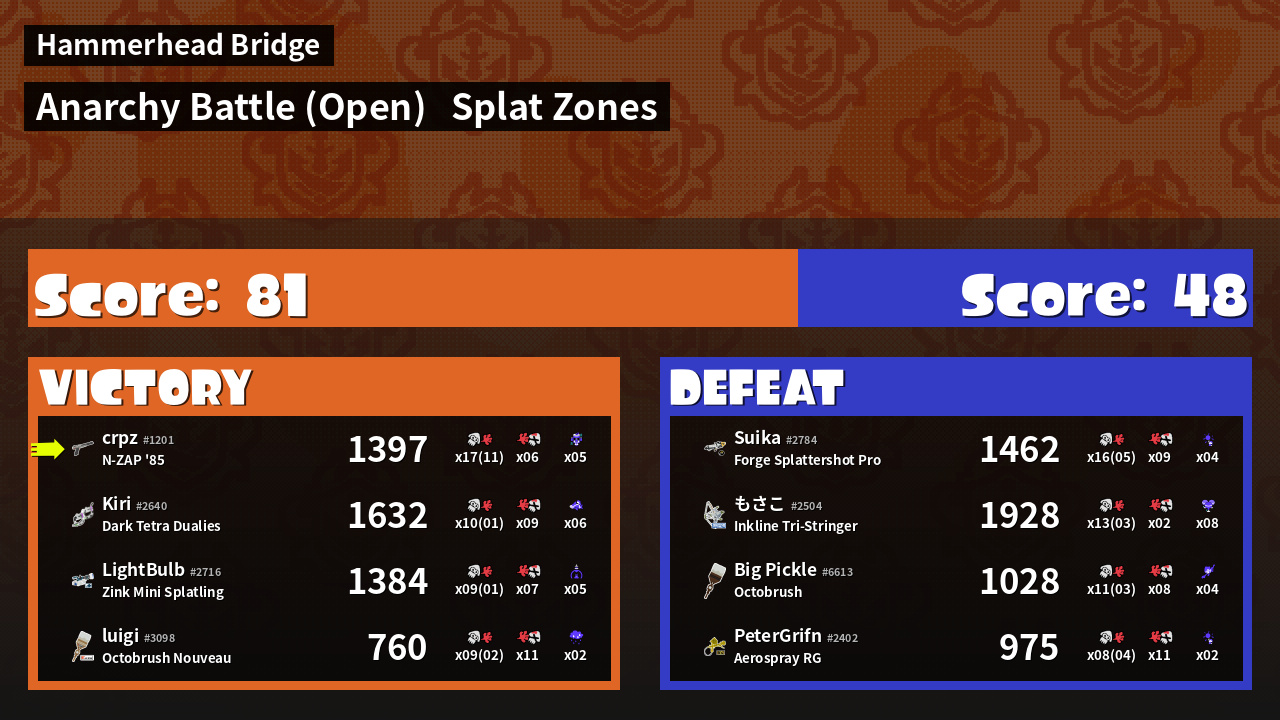 | Mode | Splat Zones - Anarchy Battle (Open) | ||