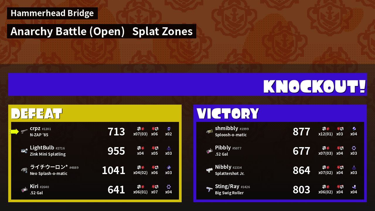 | Mode | Splat Zones - Anarchy Battle (Open) | ||