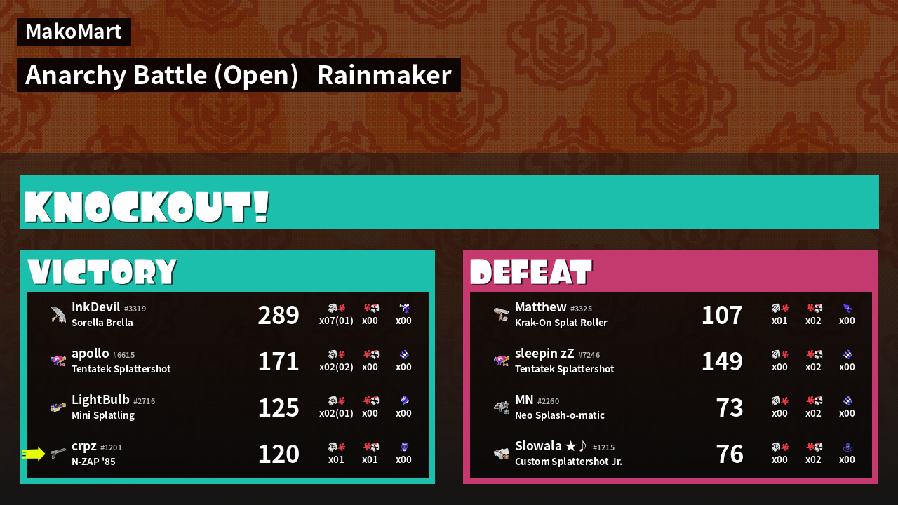 | Mode | Rainmaker - Anarchy Battle (Open) | ||