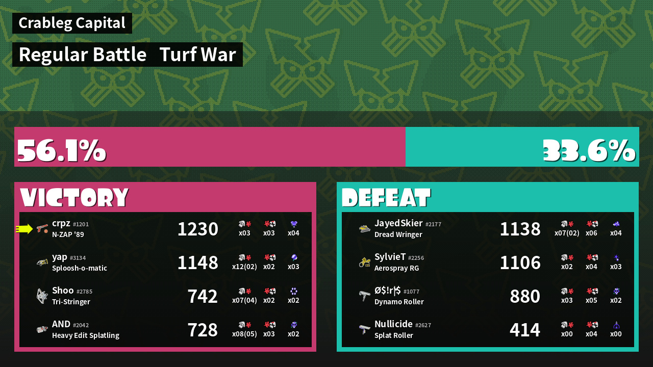 | Medals | #1 Turf Inker #1 Enemy-Base Inker #1 Super Chump User | ||