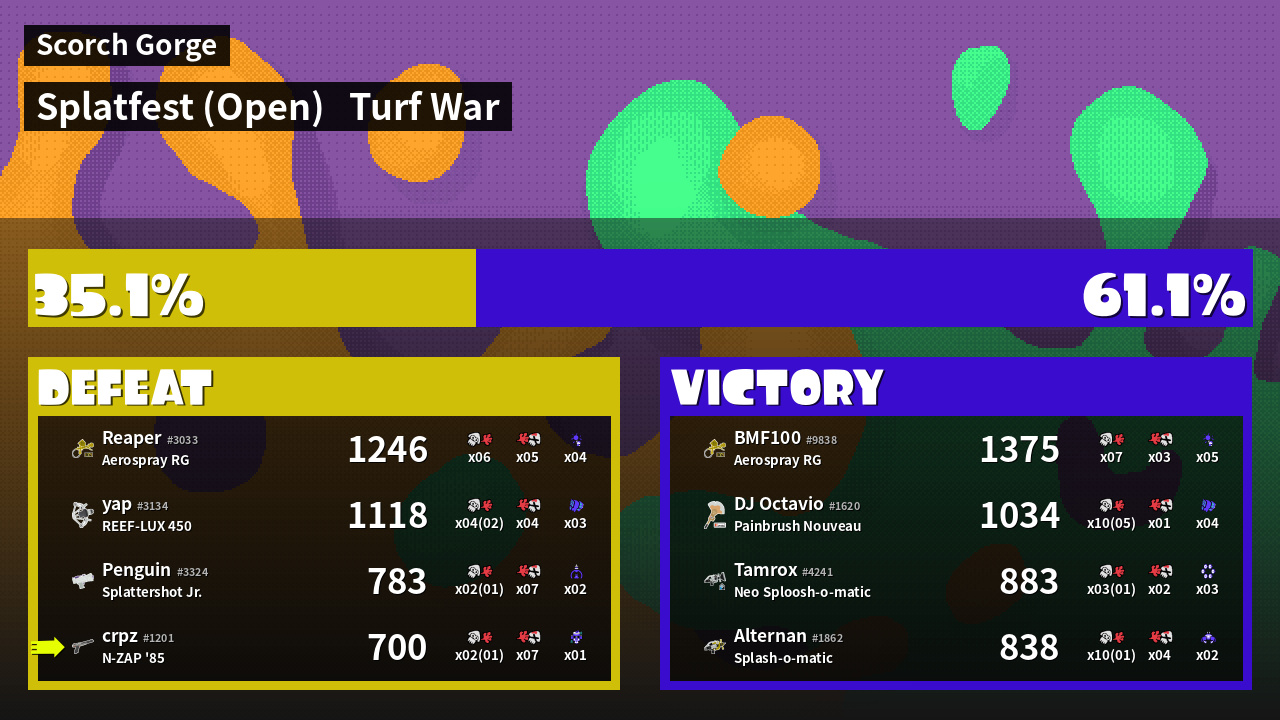 | Medals | #1 Ground Traveler #2 Super Jump Spot #2 Splat Assister | ||