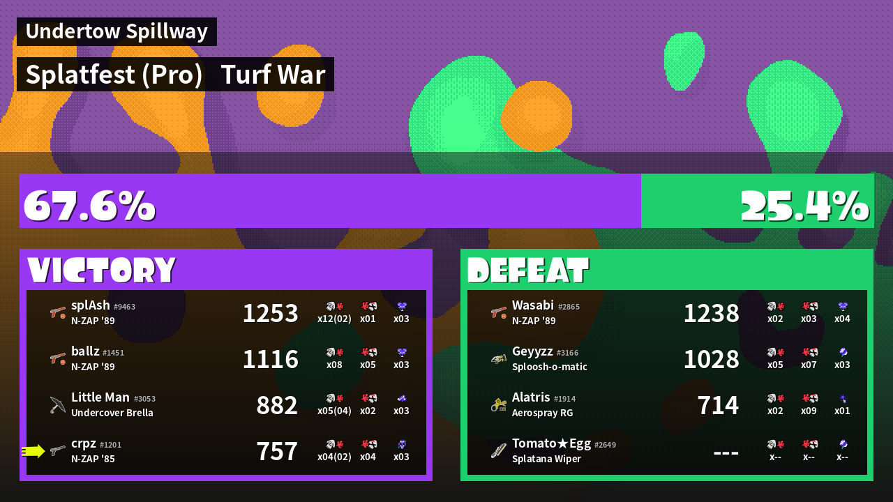| Medals | First Splat! #1 Tacticooler User #2 Enemy-Base Inker | ||