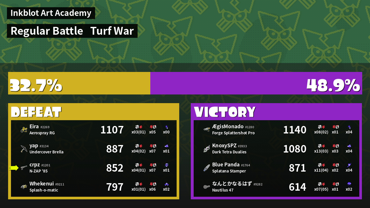 | Medals | #1 Overall Splatter #1 Enemy Splatter #1 Base Defender | ||