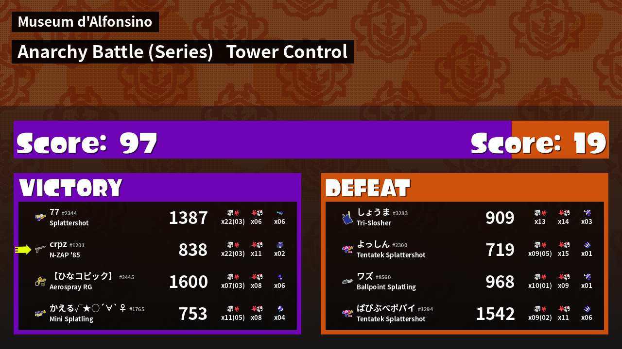 | Mode | Tower Control - Anarchy Battle (Series) | ||