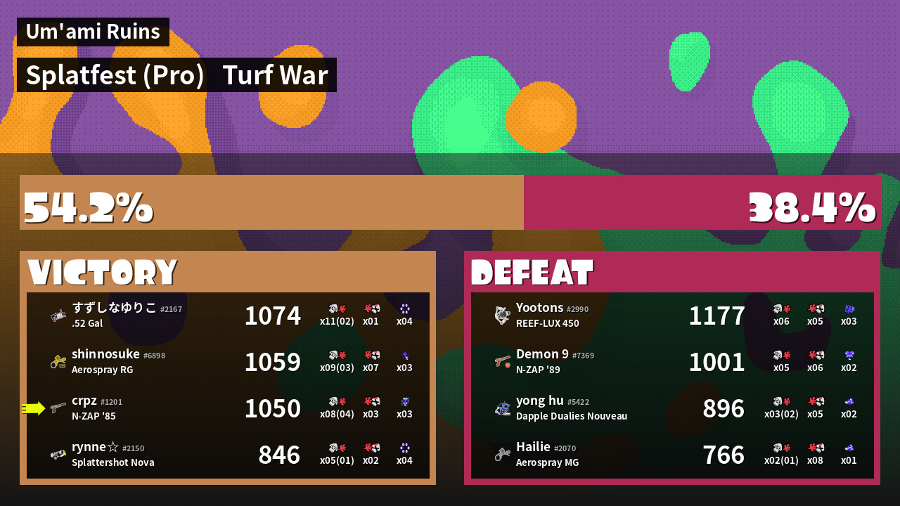 | Mode | Turf War - Splatfest (Pro) | ||