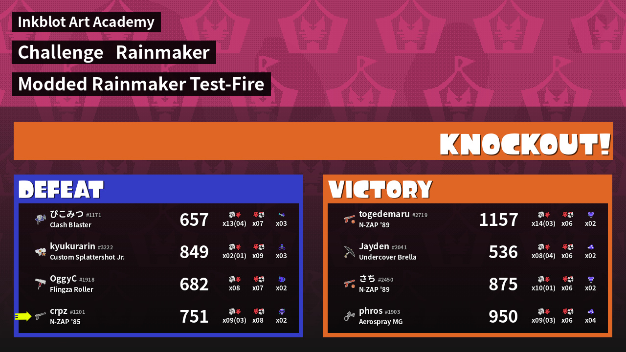 | Medals | #1 Rainmaker Stopper #1 Ground Traveler #1 Tacticooler User | ||