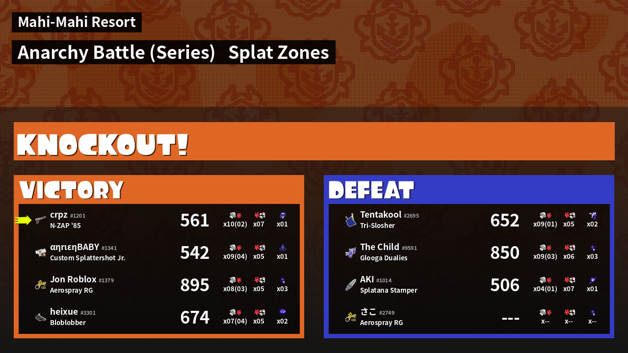 | Mode | Splat Zones - Anarchy Battle (Series) | ||