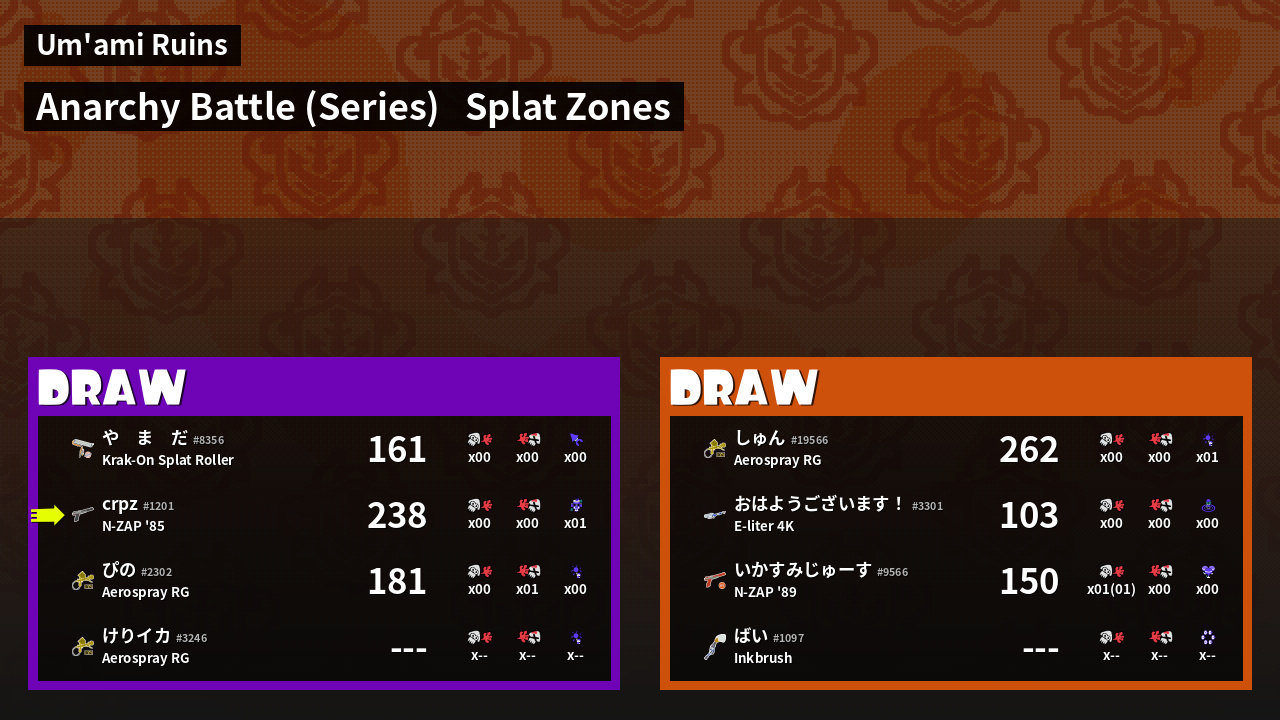 | Mode | Splat Zones - Anarchy Battle (Series) | ||