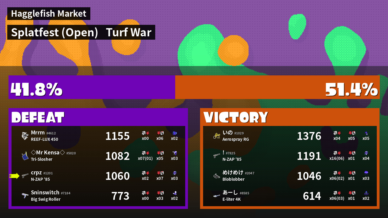 | Medals | #1 Popular Target #1 Tacticooler User #2 Overall Splatter | ||