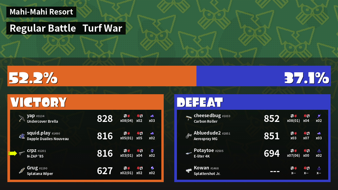 | Mode | Turf War - Regular Battle | ||