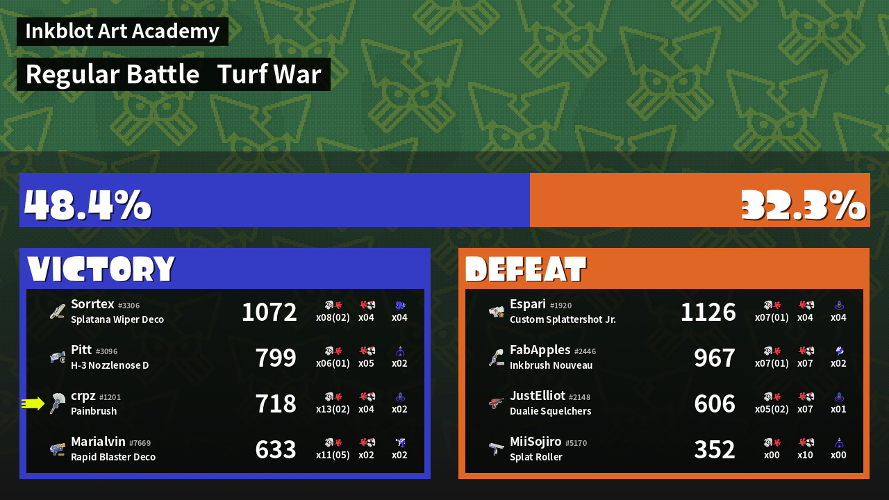 | Weapon | Painbrush ( Curling Bomb / Wave Breaker) | ||