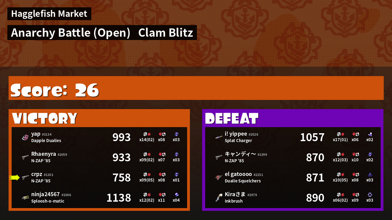 | Mode | Clam Blitz - Anarchy Battle (Open) | ||