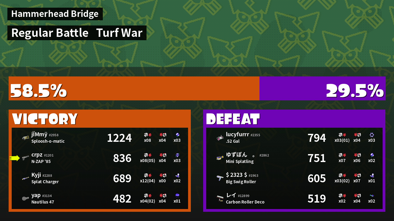| Medals | #1 Splat Assister #1 Tacticooler User #2 Overall Splatter | ||