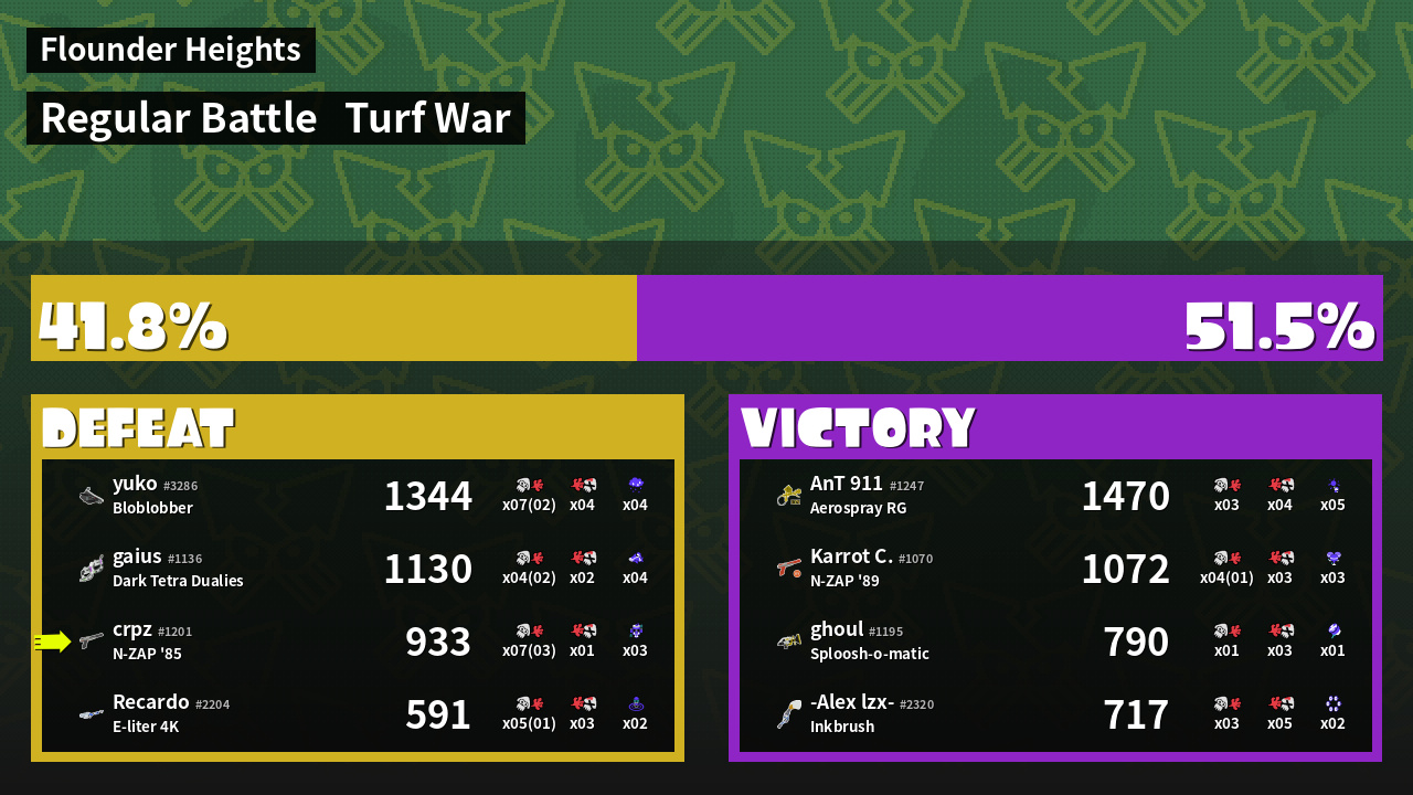 | Medals | #1 Overall Splatter #1 Popular Target #1 Home-Base Inker | ||