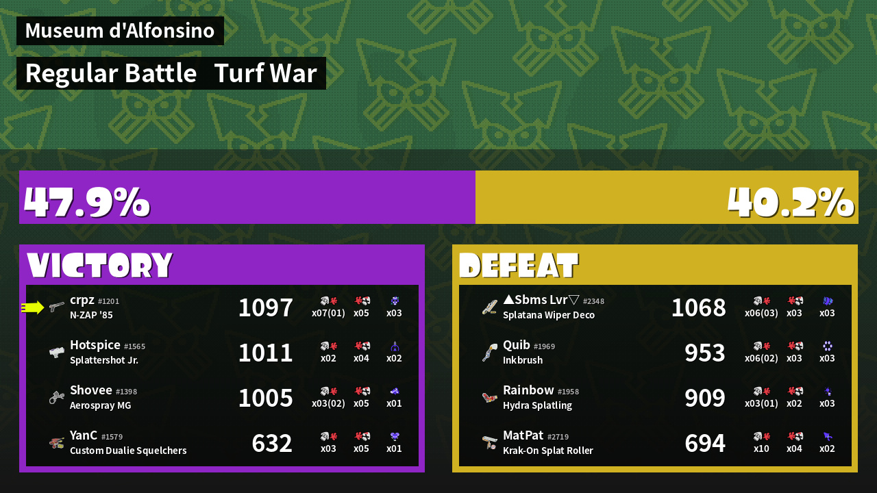 | Medals | #1 Overall Splatter #1 Turf Inker #1 Enemy Splatter | ||