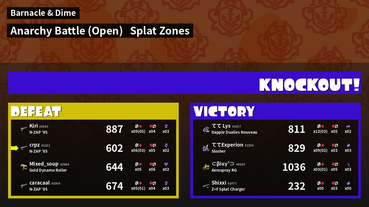 | Mode | Splat Zones - Anarchy Battle (Open) | ||